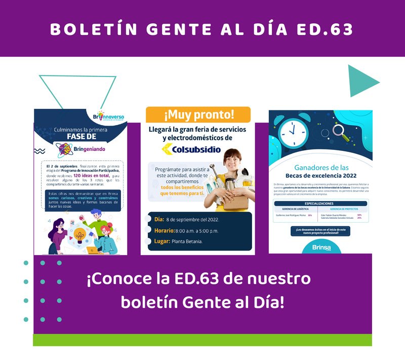 ¡Así vamos avanzando en el desarrollo de Bringeniando! Prográmate para la Feria de Electrodomésticos de Para esta feria de Colsubsidio, les informamos que, los días 7 y 8 de septiembre, no estará disponible el parqueadero del bloque 2. Por eso, les recomendamos hacer uso de las rutas de transporte. ¡Felicitaciones a los ganadores de las […]